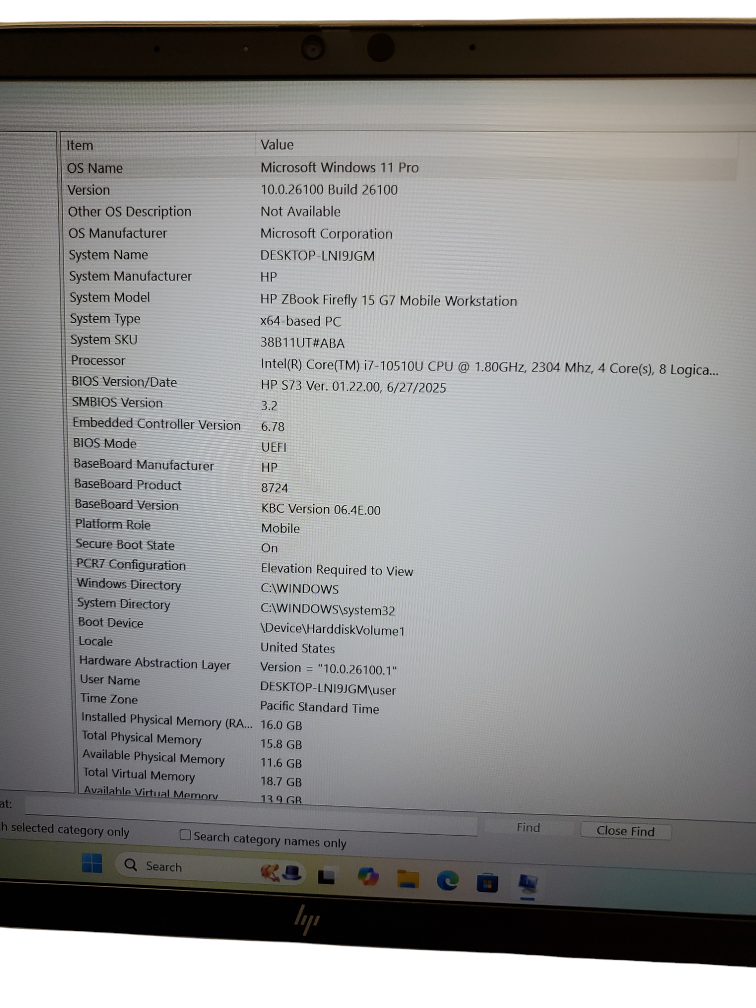Model: HP Zbook FireFly 15 G7